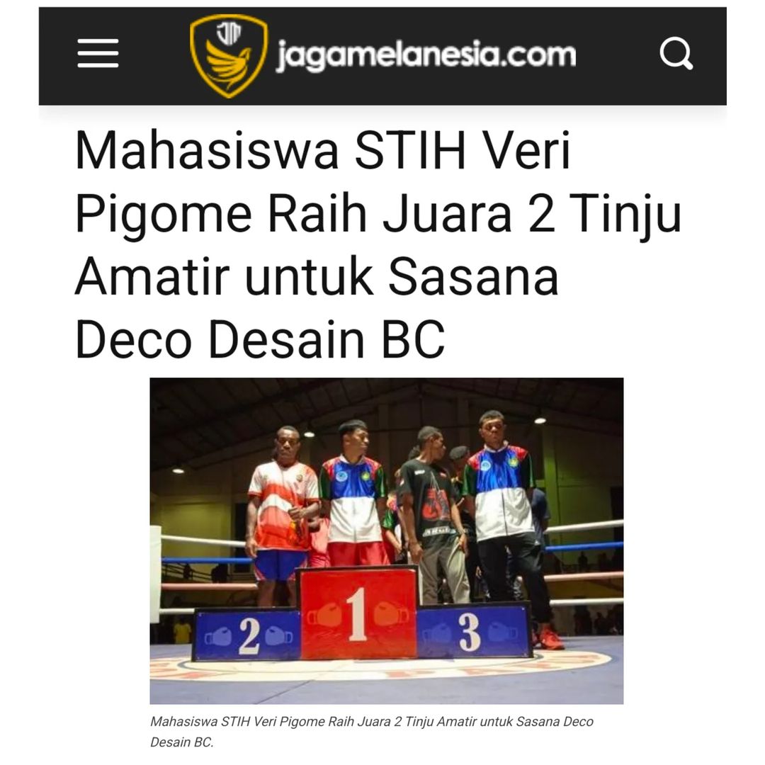 Meskipun Veri Pigome bernaung di bawah sasana Deco Desain BC Manokwari, namun status sebagai mahasiswa STIH Manokwari tentu tak terlepas dan membawa nama baik almamaternya bertarung di atas ring tinju Manokwari Bupati Cup. Dengan hasil ketekunan berlatih yang luar biasa, seorang Veri Pigome mampu keluar sebagai juara dua boxing amatir Manokwari tahun 2022.